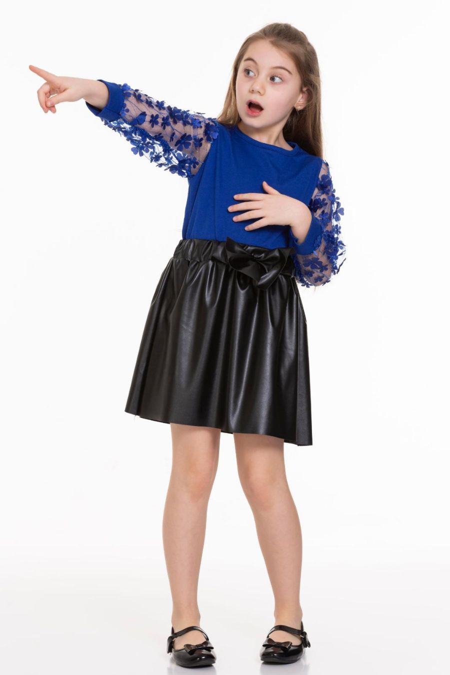 Çiçek Tüllü Deri Etek Takım,Üst Krep Scubo Kumaş,Etek Deri Kumaş,Bel Kemerli.