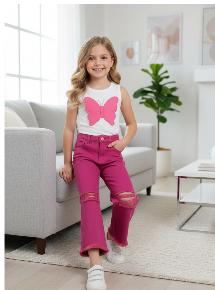Kelebek Baskılı Pembe Renk Askılı Badi ve Kot Pantolon Kombin, Hem rahat hem de şık bir giyim alternatifi isteyenler için mükemmel bir seçenek. Şimdi, bu zarif kombini dolabınıza ekleyerek yaz mevsiminin tadını çıkarın!