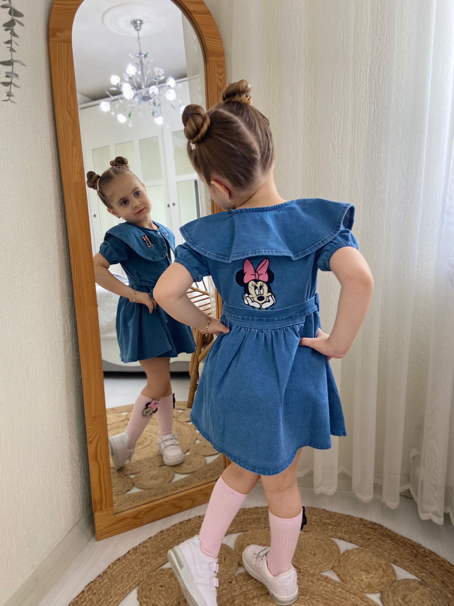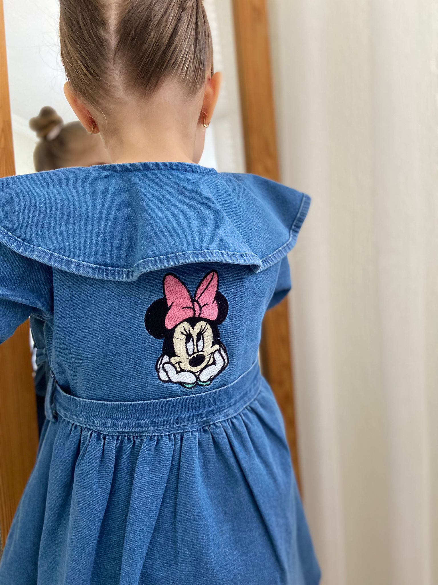Minnie Mause Nakış İşlemeli Kot Elbise