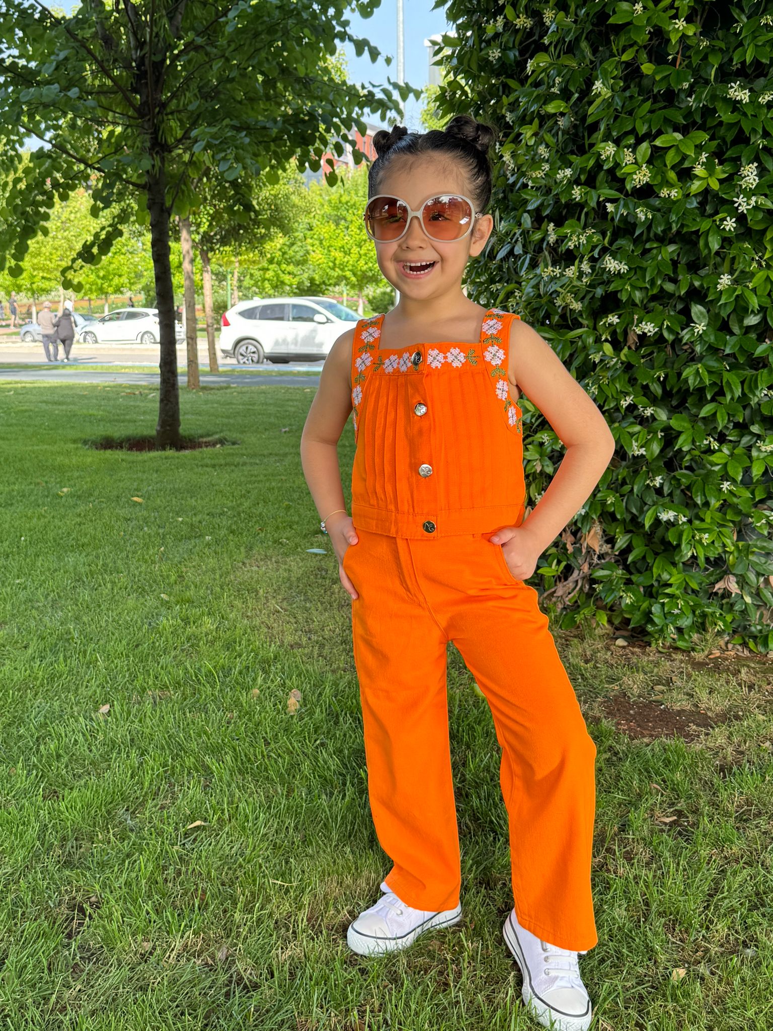Nakış İşlemeli Turuncu Renk Yazlık Kombin, yaz sezonunun en göz alıcı ve konforlu parçalarından biridir. Enerjik rengi ve zarif detayları ile unutulmaz anlarınızı daha da özel kılmak için harika bir seçim. Şıklığınızı ve tarzınızı yansıtacak bu kombin ile yazın tadını çıkarın!