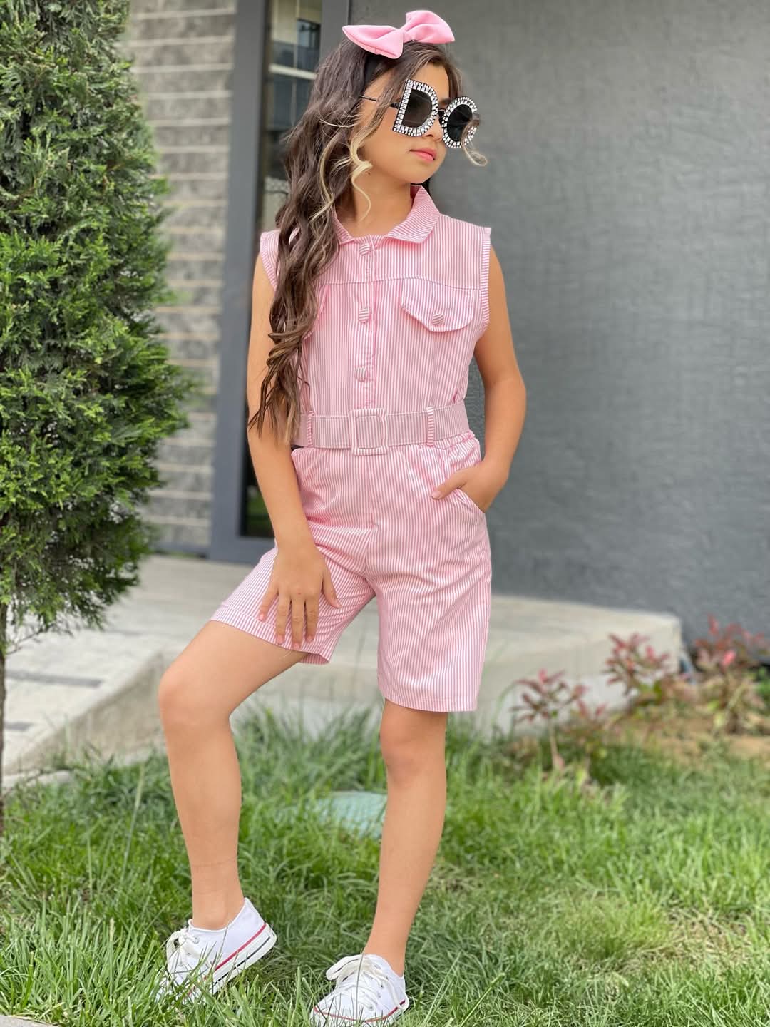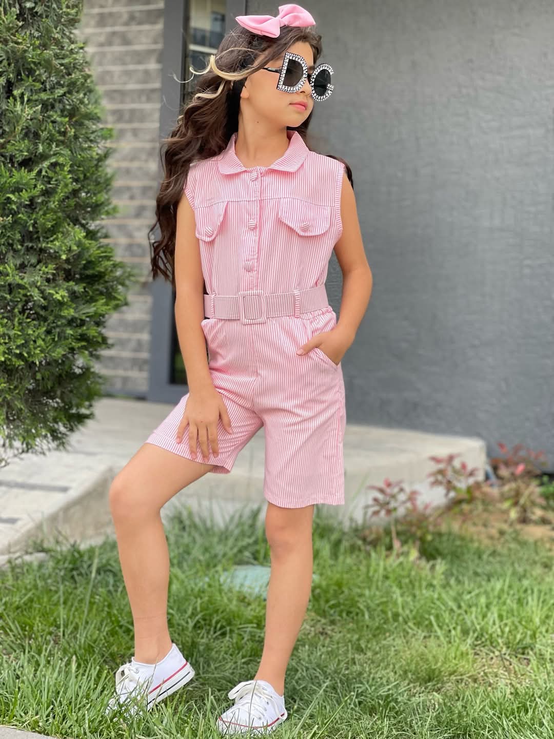 Pembe Renk Kemerli Toka Hediyeli Kısa Tulum Kombin, yaz stilinize enerji katmak için en ideal seçimdir. Şıklığı ve rahatlığı bir arada sunan bu tulumu kaçırmayın, stilinize bir dokunuş yapın!