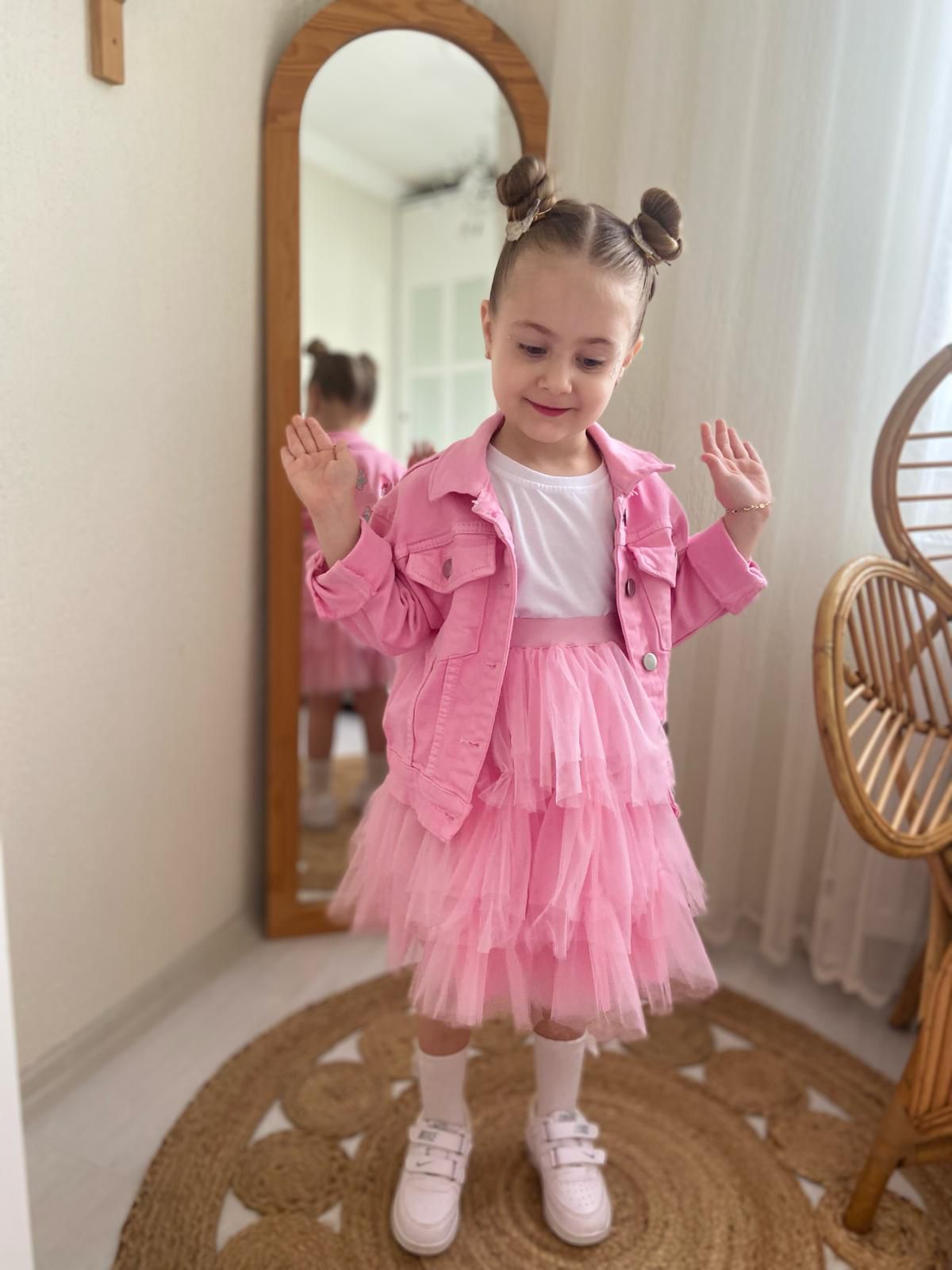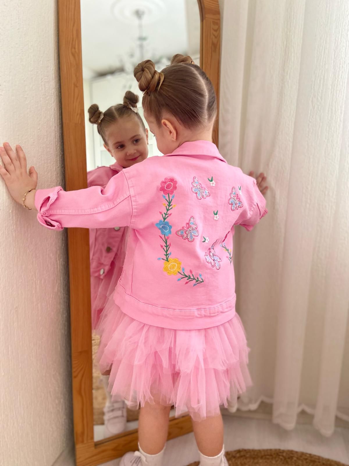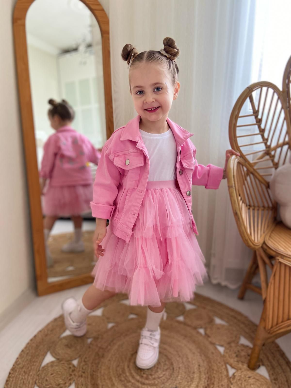 - Kot Ceket: Yüksek kaliteli pamuk kumaşından üretilmiş, pembe renkte bir kot ceket. Hem şık hem de günlük kullanıma uygun. İçerisinde zarif nakış detaylarıyla, sıradan bir ceketi sıradanlıktan çıkarıyor.