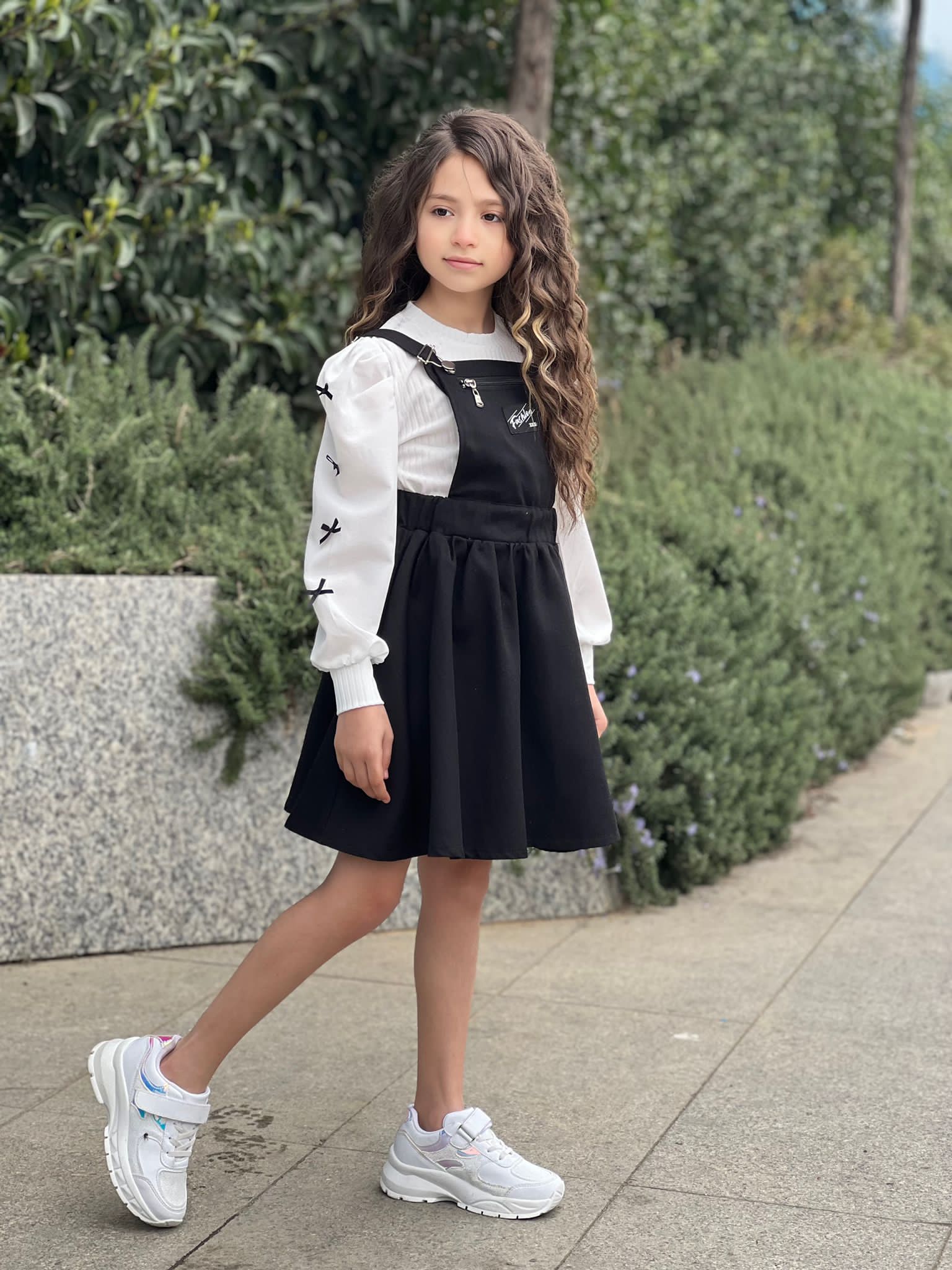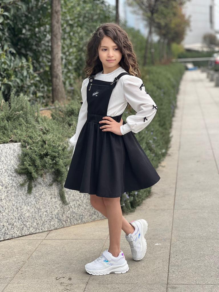 Siyah Jile Beyaz Gömlek Kız Çocuk Kombin